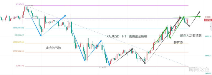 黄金本身呢,这周写文章时,个人一直在写小时图的五浪转三浪,经过周二周三的走法,完全成立get√,今天就关注一下前高的3132吧,这个位置的得失表示了黄金新五浪的形成与否。